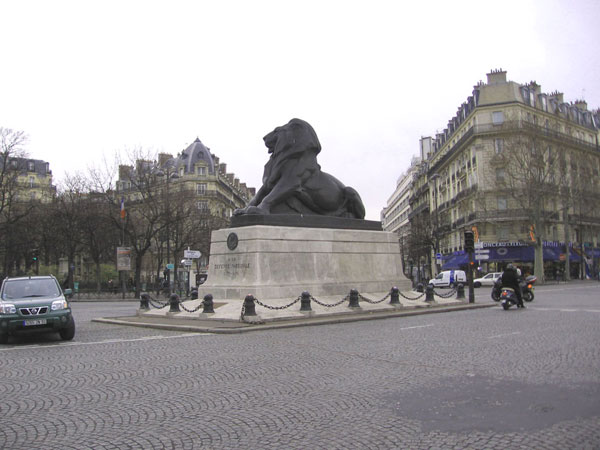Place Denfert-Rochereau, riproduzione del leone di Belfort di Frédéric Bartholdi