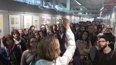 È sempre diversa e sempre uguale la Mostra. Cambia la giuria, cambiano i criteri di selezione, cambiano i selezionati, ma le sensazioni che si provano girando tra i corridoi si somigliano molto. Alla mostra colpisce il segno. Il segno vero, tracciato dalla mano. Di fronte ad un originale non si può non schiacciare il naso contro la plastica, per cercare di individuare l’impronta vera dell’artista. Ci si mette di sbieco, di sopra e di sotto per scovare la traccia, gli spessori, i solchi. Le tecniche utilizzate non sono scritte accanto ai nomi. Bisogna intuirle. Un po’ come indovinare gli ingredienti di una ricetta. Ci sono, tra le altre, grafite, acquerello, matite colorate, collage, acrilici, inchiostro, c’è il digitale (poco) quello pulito e quello pittorico.