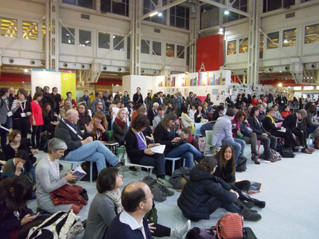 Cosa si vede alla fiera: ci sono giacche e tailleur, ventiquattr’ore e cartelline portfolio, passi svelti che attraversano i corridoi ad ampie falcate e passeggiatori rilassati con scarpe basse e borsetta, gruppetti affini ritrovati dopo tanto tempo, fermi in mezzo al corridoio ad ostruire il passaggio (intenti in saluti, abbracci e aggiornamenti annuali).