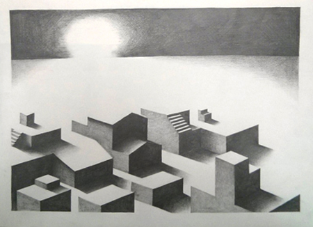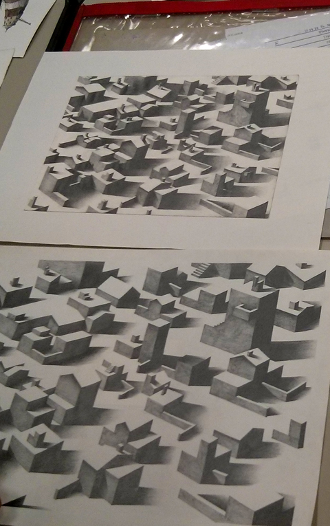 Le cinque tavole, molto grandi, rappresentavano, da diverse distanze prospettiche, una città di cubi deserta, quasi algida. Nessuna finestra, nessun segno di vita umana, animale o vegetale. E’ un lavoro che mi ha innamorata al primo sguardo (ho subito pensato alla Città ideale del cinquecento portata in chiave moderna), ma gli altri giurati, pur riconoscendo la qualità del lavoro, erano molto scettici. Potevano illustrare un libro adatto ai bambini, queste cinque tavole?