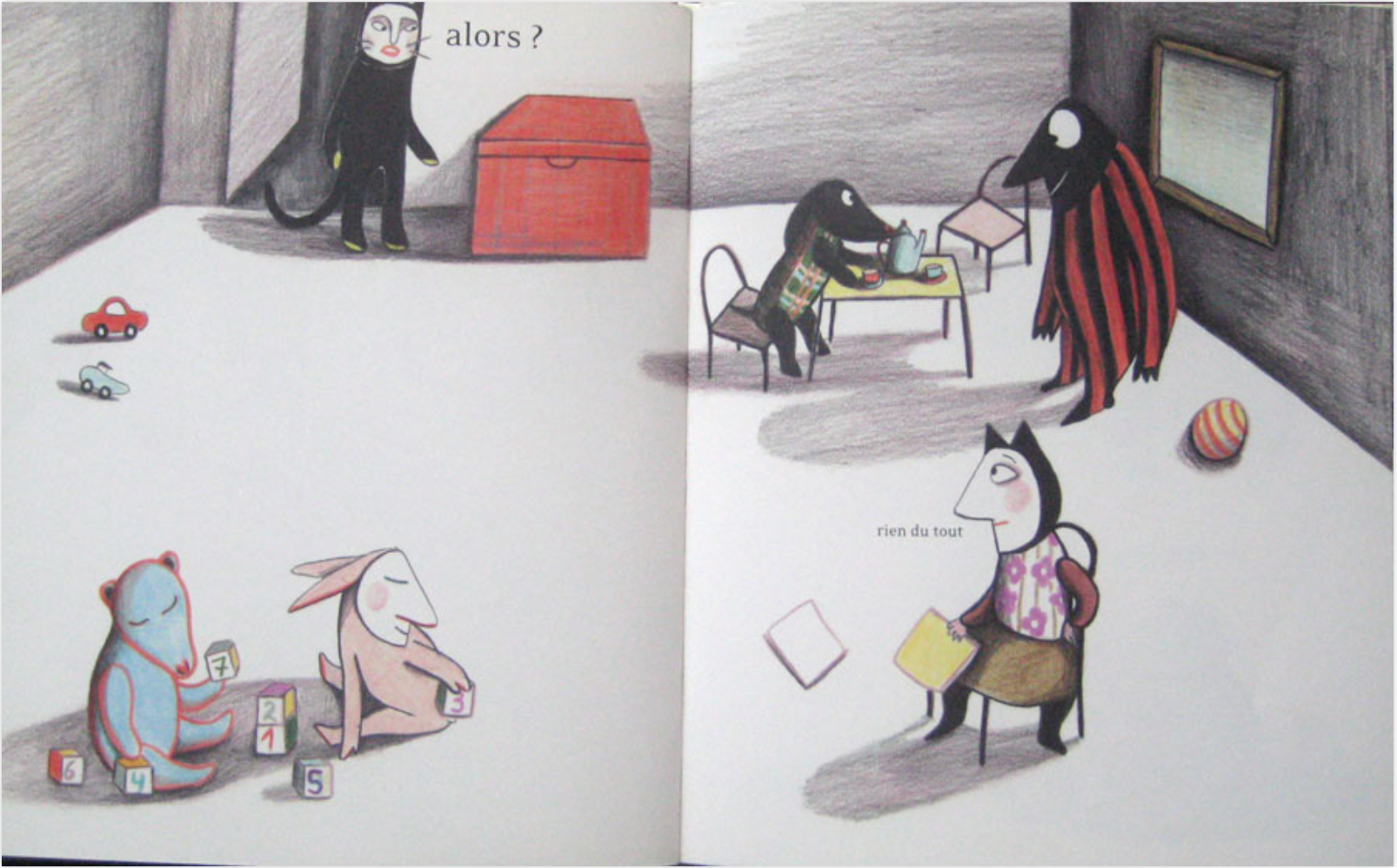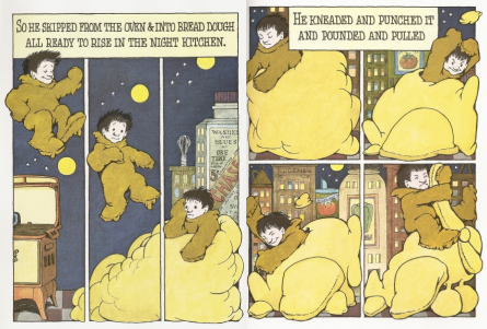 La messa in pagina delle immagini contribuisce, in un caso, al realismo (vediamo il quadro netto delle foto appoggiate sulla pagina, due in una doppia pagina, il testo prende molto spazio), nel secondo, all’illusione fiabesca (immagine intera a doppia pagina, testo ai margini).