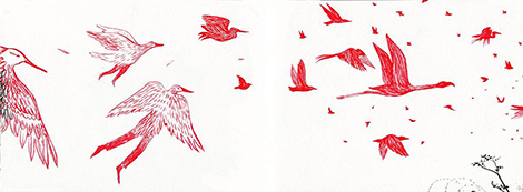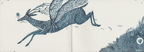 Un daino salta, una bambina sbircia attraverso la porta, si cade in un complicato labirinto, si arriva al mare, si migra in volo, si arriva ad una casetta, si riparte, piano o di corsa, ci si riposa all’ombra di un albero…. le illustrazioni sono una più bella dell’altra!