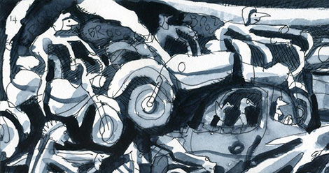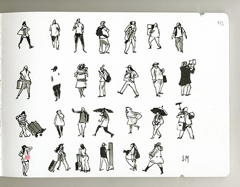 Le sue tappe sono diventate, allora, le scrivanie degli illustratori che gli aprono la porta, il suo viaggio, città diverse, china e matite, passamano, inviti e biciclettate: ogni pagina ha una storia e un carattere diverso.