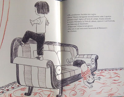 Nel libro Mon chat le plus bête du monde, un elefante vive come un gatto nella casa del protagonista, il quale per tutto il libro lo chiama “il mio gatto”. Non ci farebbe per nulla ridere questa situazione (farci ridere era lo scopo dell’illustratore) se l’illustrazione fosse LIRICA e non REALISTA. E’ il fatto che un elefante sia “realmente” in un appartamento che rende comica la scena.